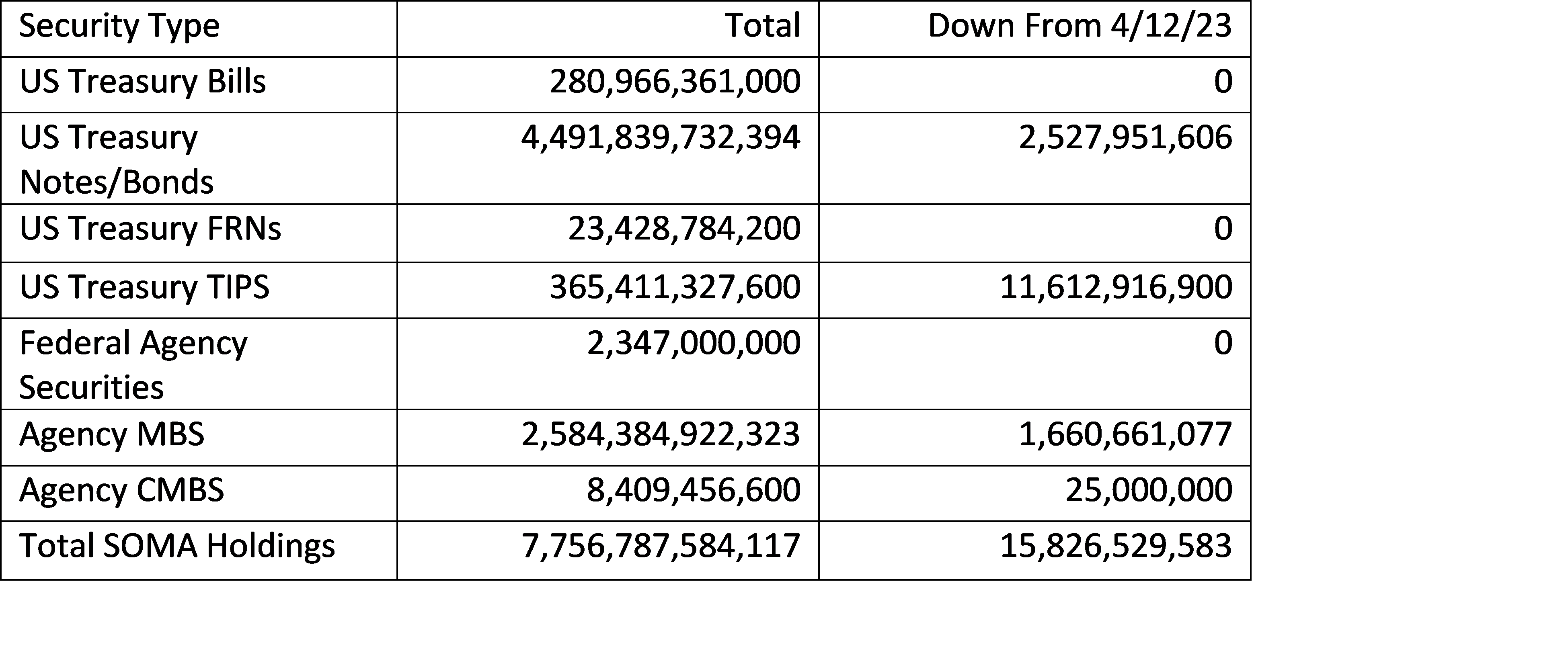 Also note that the full par value of the TIPS will drop, leaving a much smaller drop in notes and bonds. This is because there is no TIPS issuance occurring in mid April so it must fully drop off with the reinvestment difference made up in other notes and bonds issuing then.