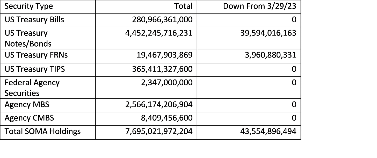 QT will reduce Fed balance sheet by ~79.87b in April: 60b for UST, 19.87b for MBS. UST reduction is once again heavily weighted on the end of month maturities which will reflect on the 5/3/23 balance sheet. There will be no bill rolloff this month.