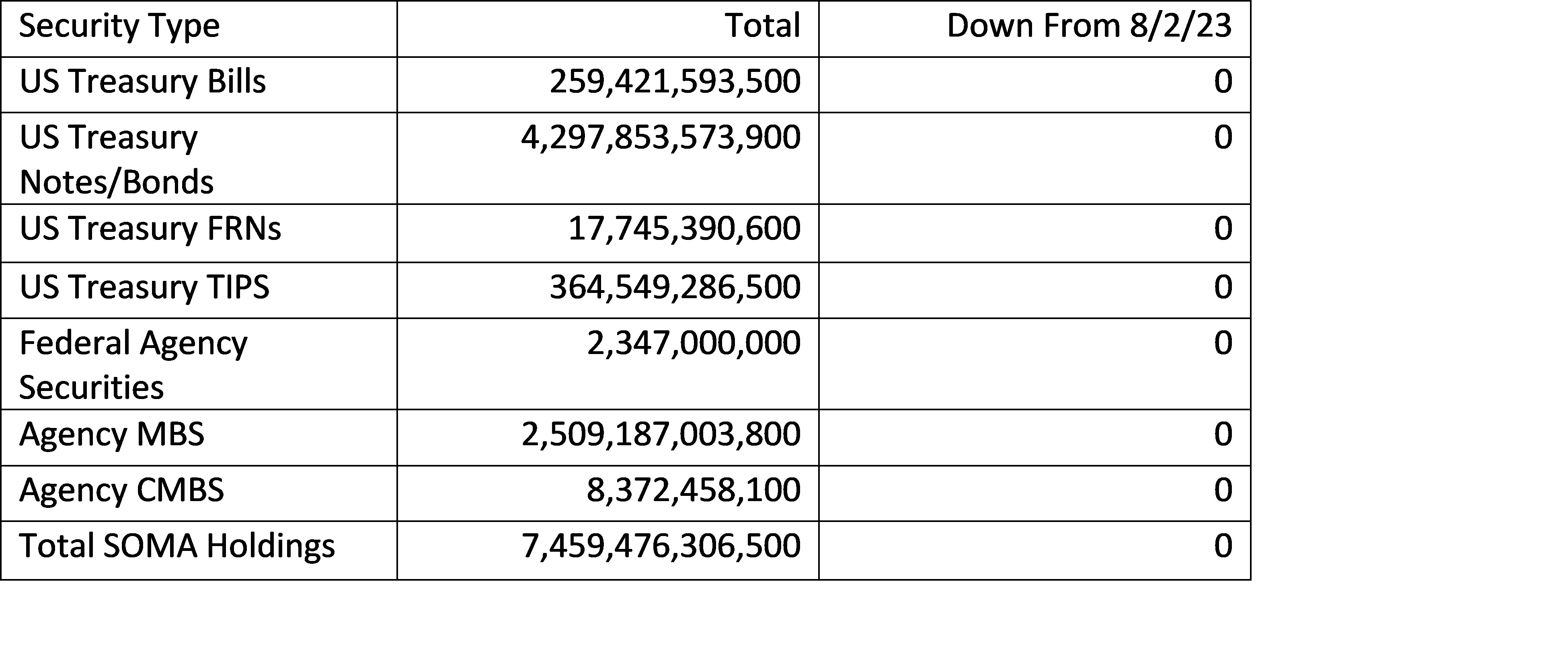 Since Coupons maturing exceed the 60b cap, the Fed will fully reinvest their bill maturities in August.