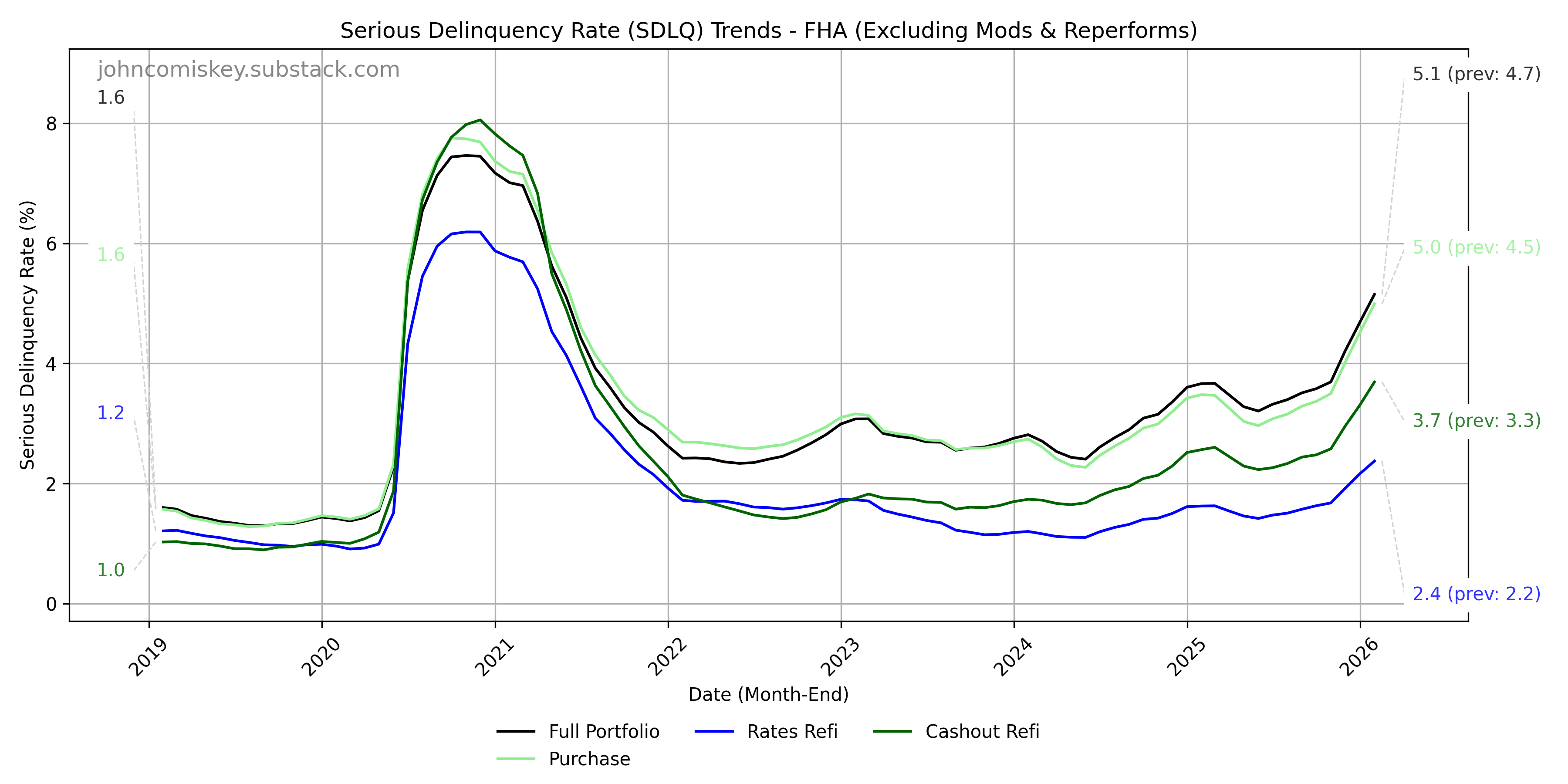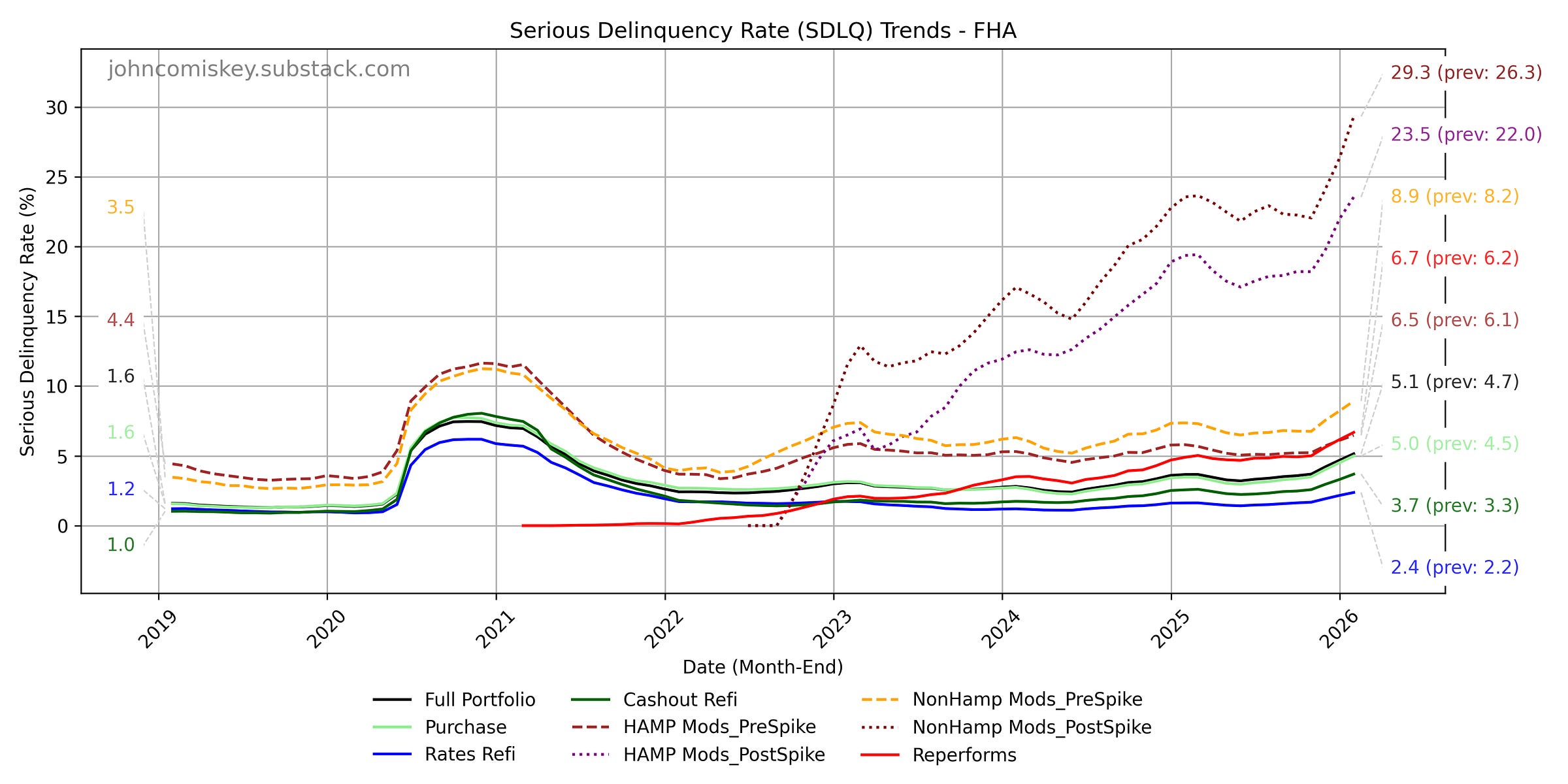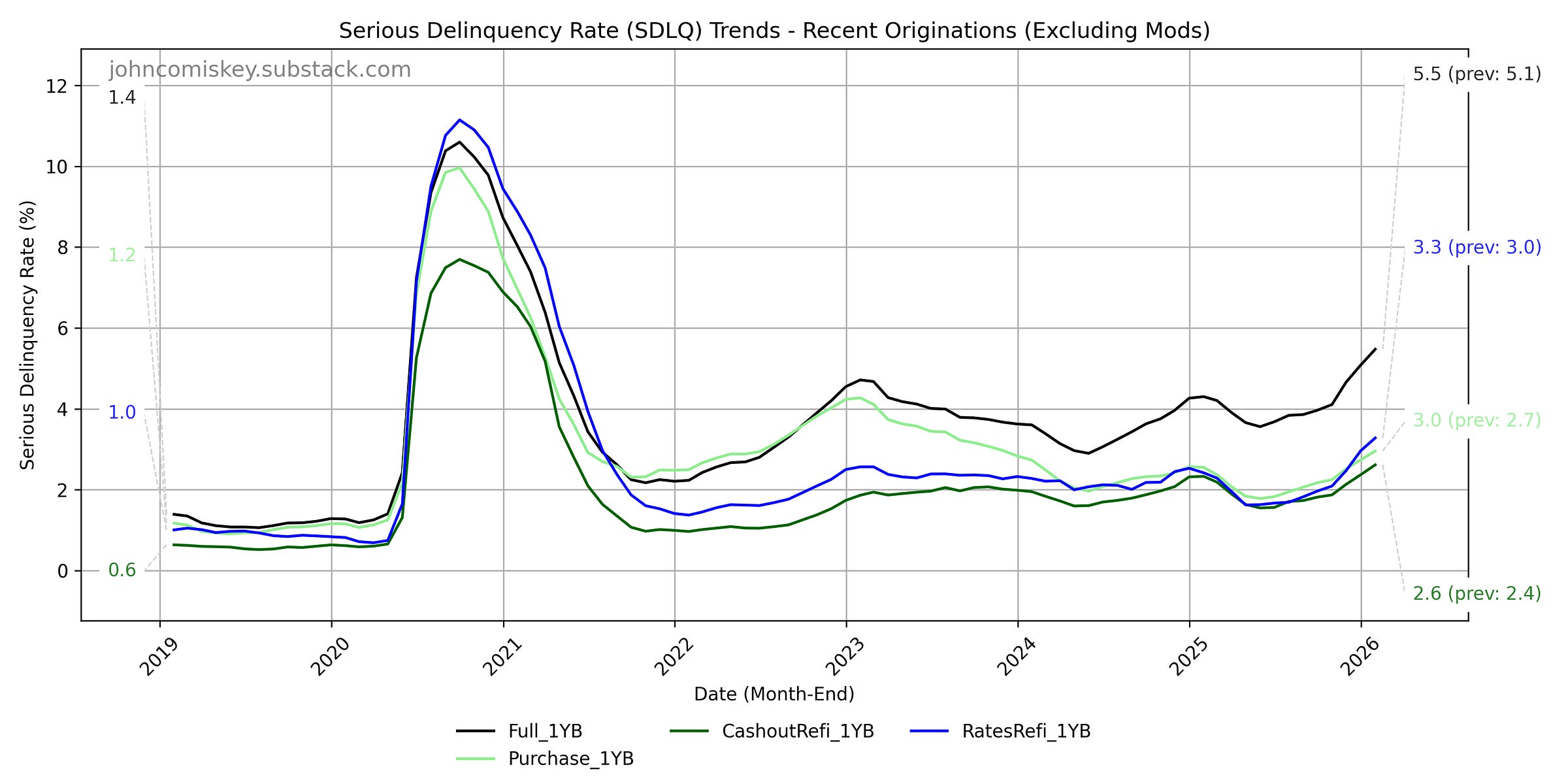 Serious delinquency rates surged higher again rising from 4.68% in December to 5.15% in January and are now almost 40% higher than where they were in October