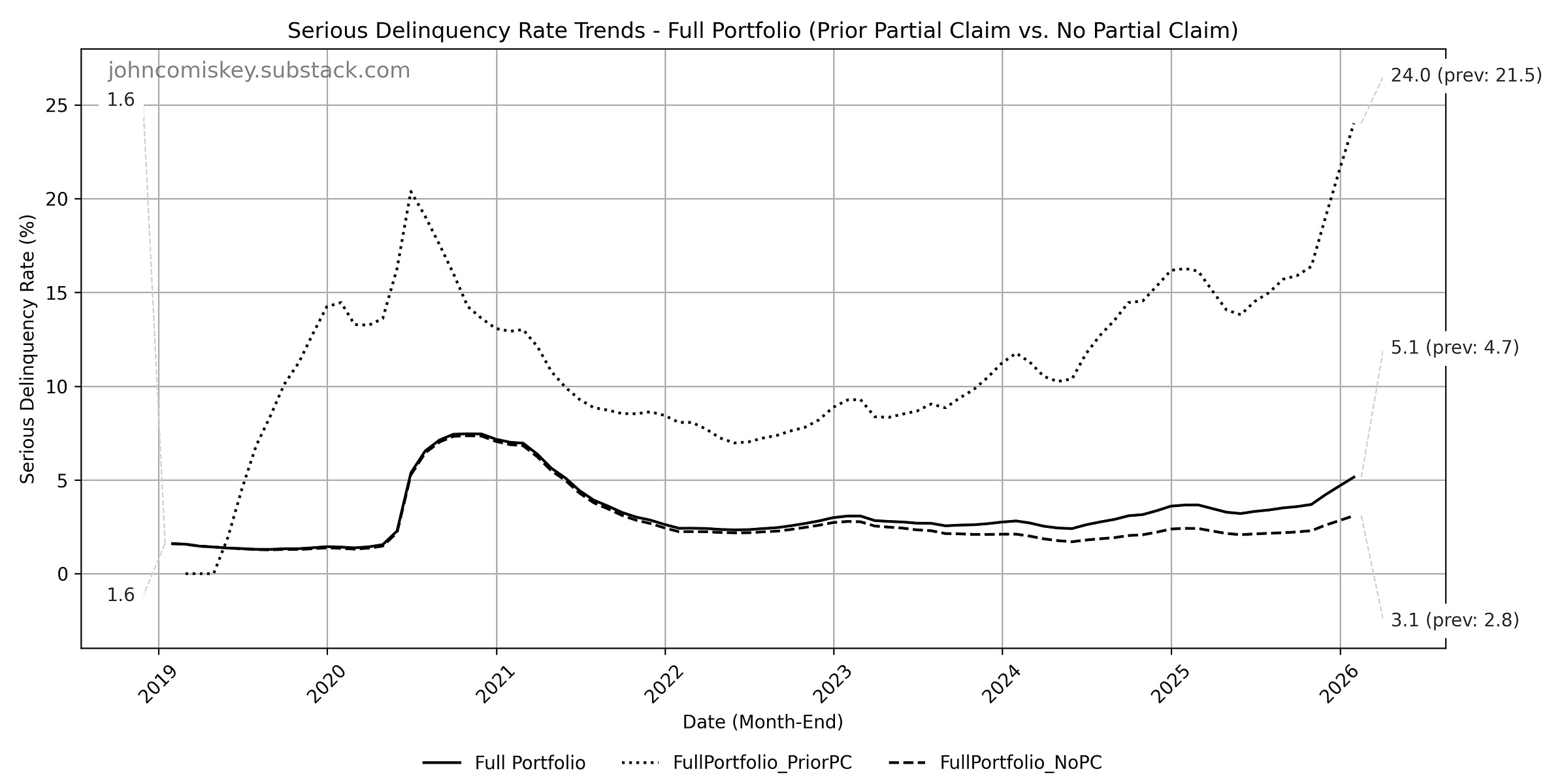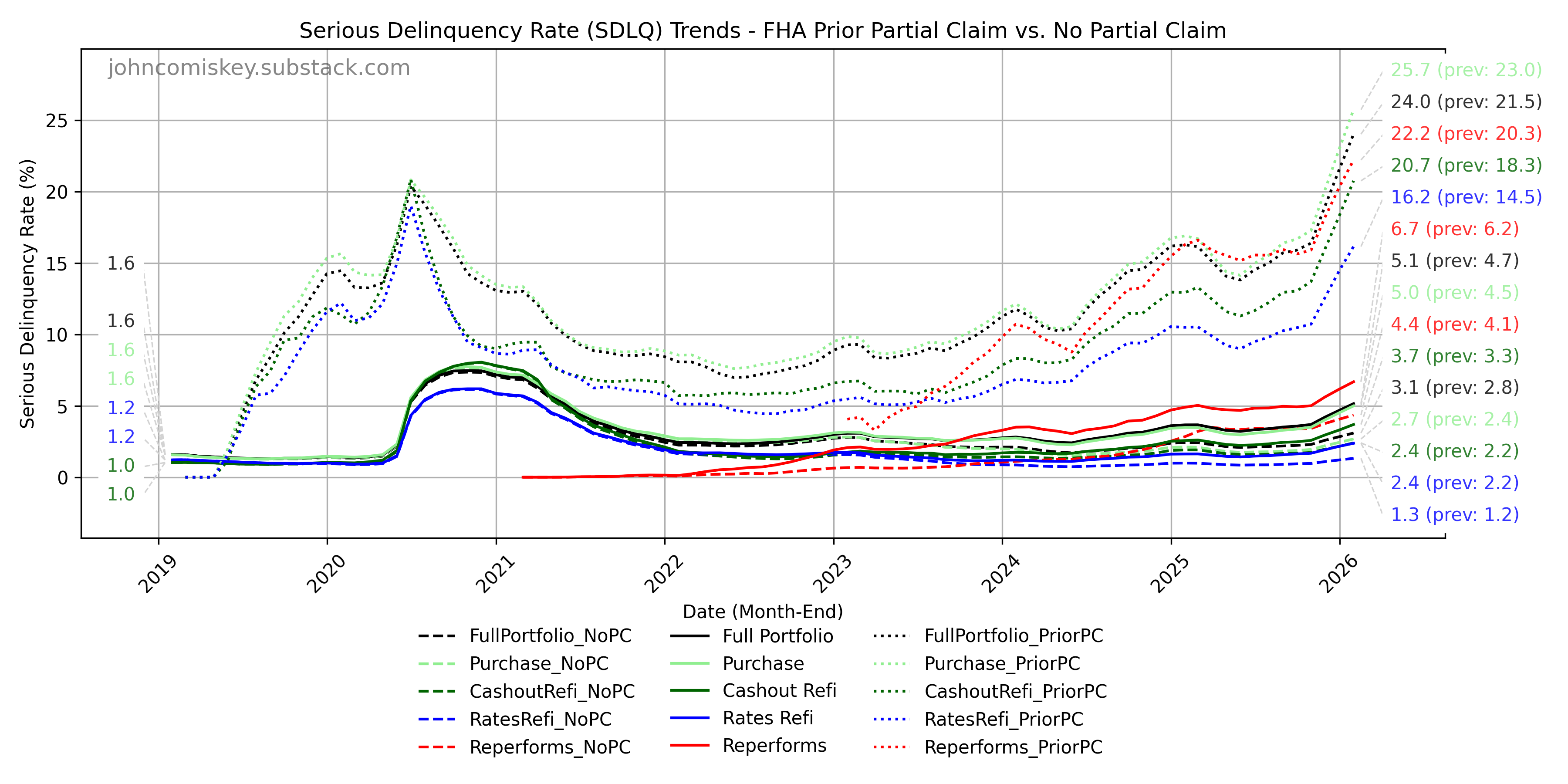 While there are a few subplots to the FHA story, the performance disparity prior partial claim vs. not is the main plot by far.