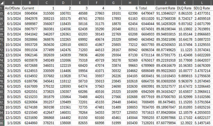 DLQ is up 22bps in January, which is actually pretty big considering it dropped 65bps last January and 15bps the January before.