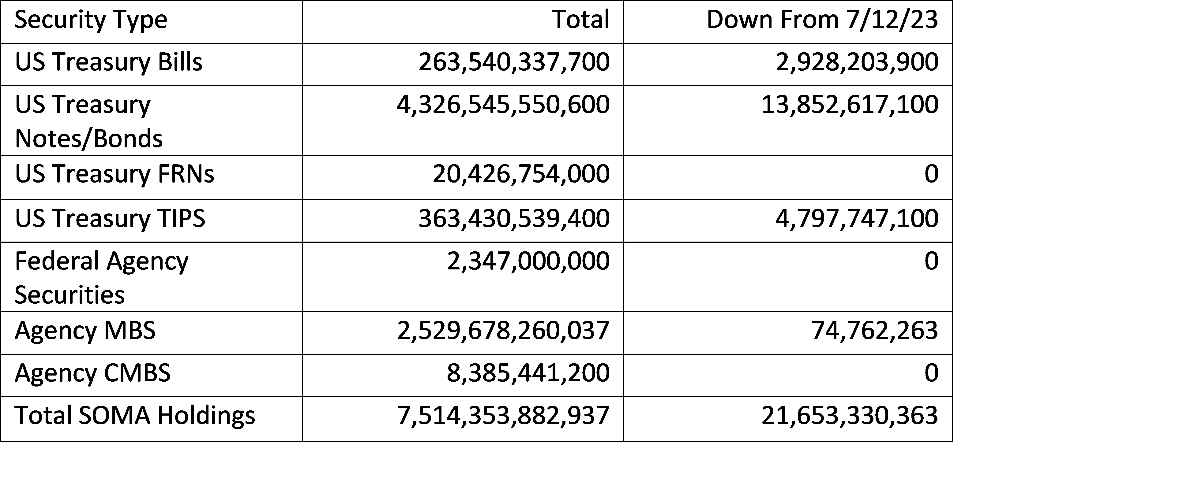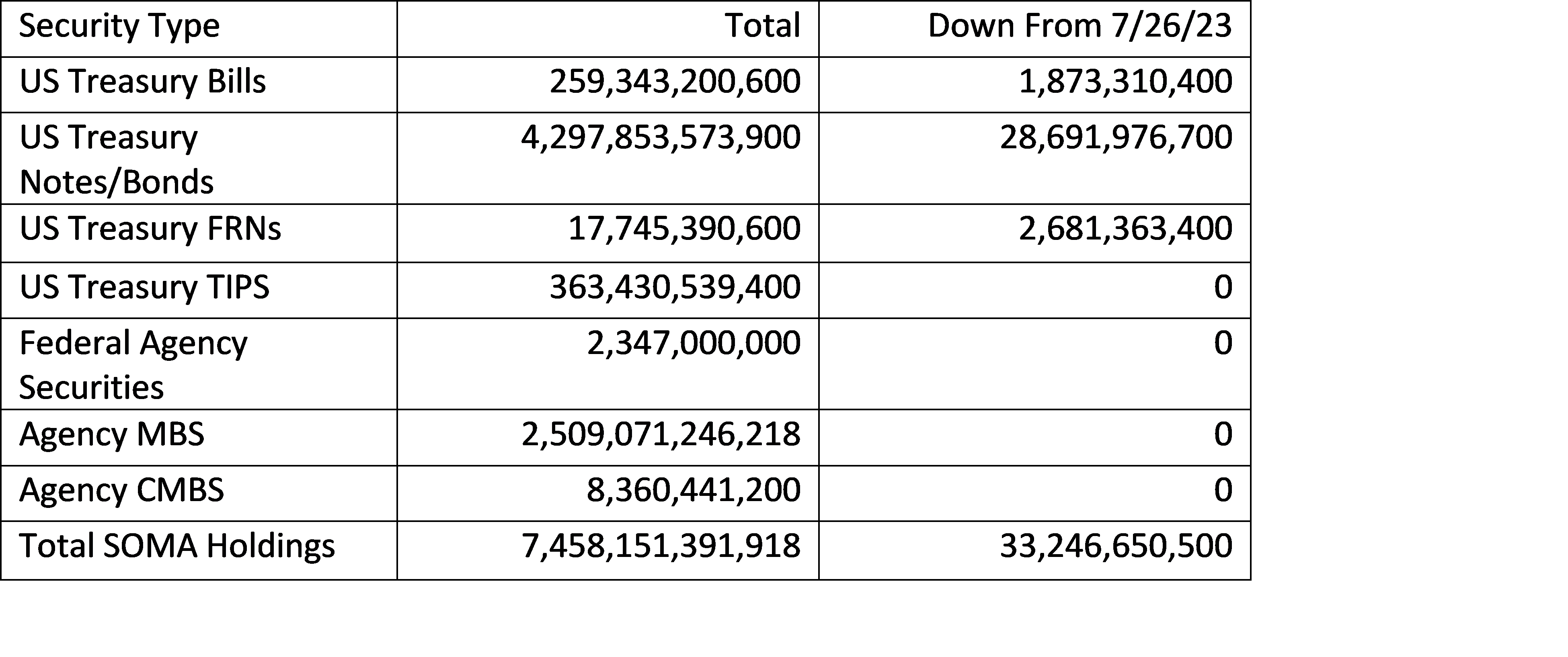 Busy summer so only a quick note this month. QT marches on in accordance with all the Feds official communications about it. That is all.