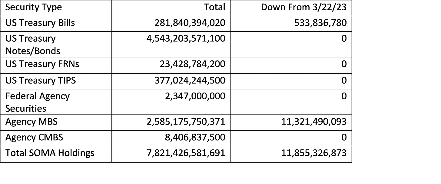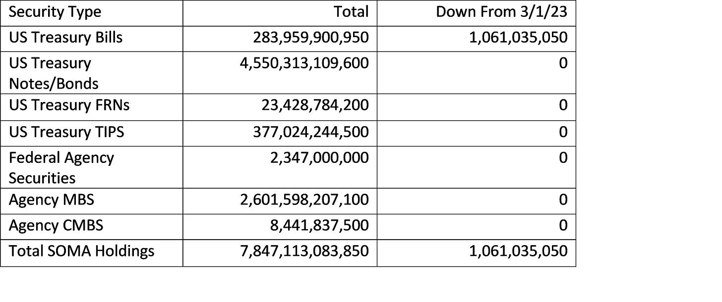 QT will reduce Fed balance sheet by ~76.46b in March: 60b for UST, 16.46b for MBS. UST reduction is heavily weighted on the end of month maturities which will reflect on the 4/5/23 B/S. There will be a small amount, ~4b, of bill rolloff spread through the month.