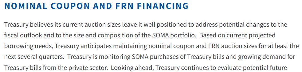 At some point Treasury will change the nominal coupon issuance, but it may be a while yet.